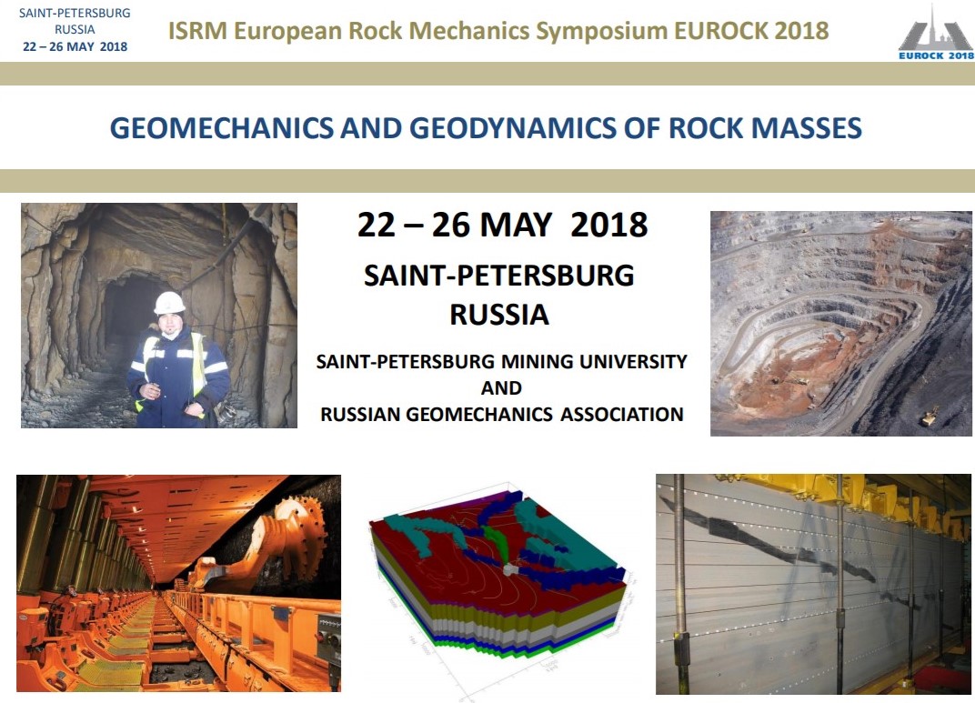 The Organizing Committee and the Saint-Petersburg Mining University invite you to participate in the European Rock Mechanics Symposium EUROCK 2018 "Geomechanics and Geodynamics of Rock Masses", to take place 22–26 May 2018 in Saint-Petersburg, Russia.  Conference themes - Physical and mechanical properties of fractured rock